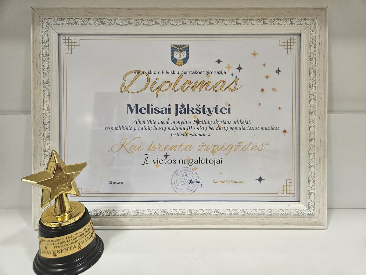 2026 m. sausio 29 d. Pilviškių „Santakos“ gimnazijoje vyko pradinių klasių mokinių solistų bei duetų III populiariosios muzikos festivalis-konkursas „Kai krenta žvaigždės“. Jame dalyvavo ir Vilkaviškio menų mokyklos chorinio dainavimo programos 1 klasės mokinė Melisa Jakštytė. Mokinė laimėjo antrą vietą. Sveikiname!