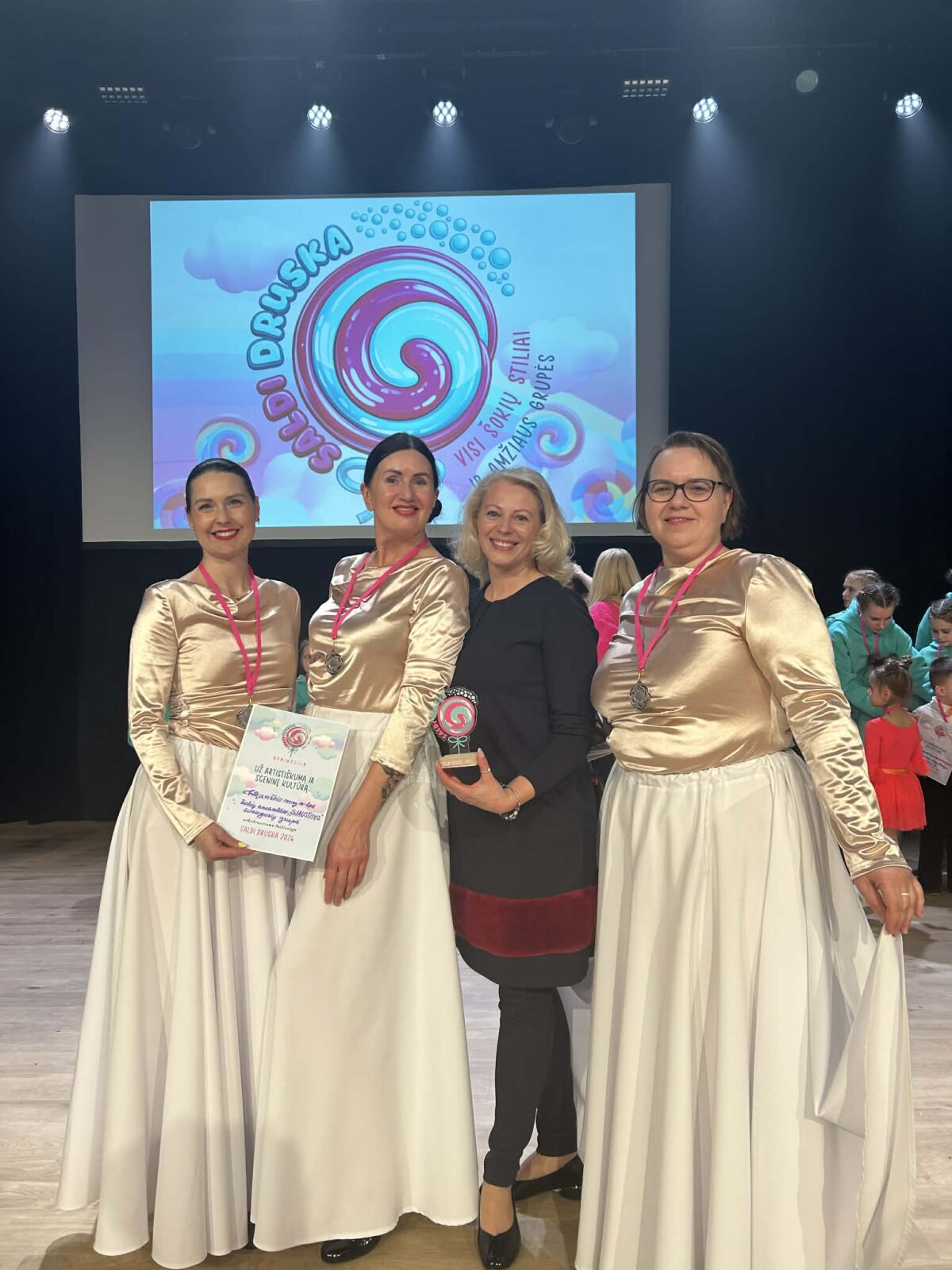 Scenoje sukosi ir mūsų mokyklos šokėjos. Buvo puiki galimybė parodyti žiūrovams sūraus darbo vaisius saldžioje scenoje. Merginos grįžo su diplomais ir medaliais.